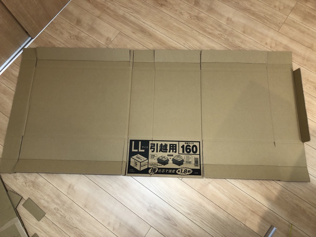近所のホムセン(島忠)で引っ越し用の160サイズを買ってきました。600円なり。