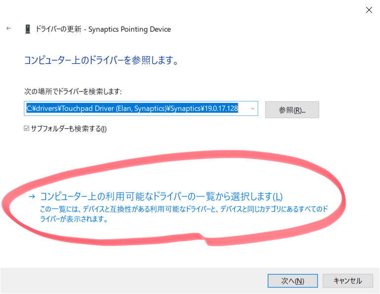 利用可能なドライバーの一覧から選択します を開きます。