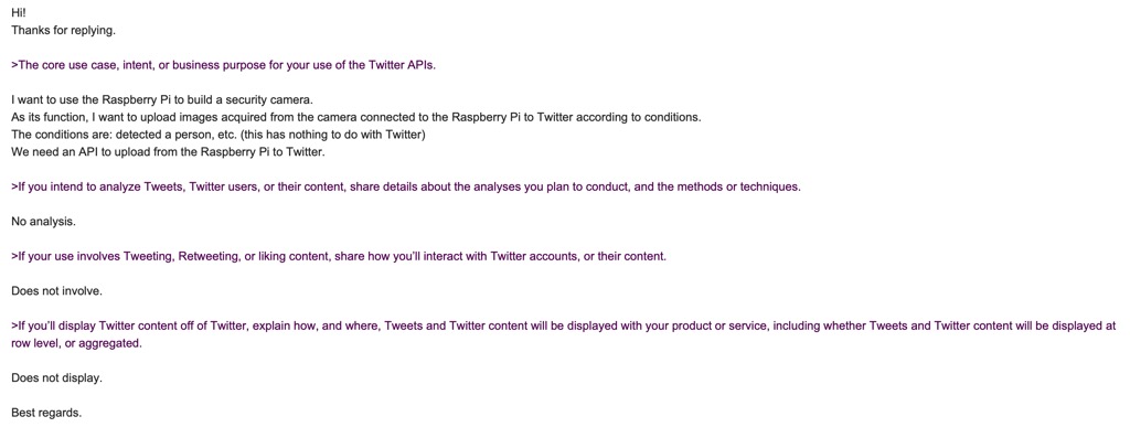 3つ目の「ツイートする?」の問いには、画像を自動でアップロード(ツイート)します、としました(最初の返信と回答を変えました←まずかったかな・・・)