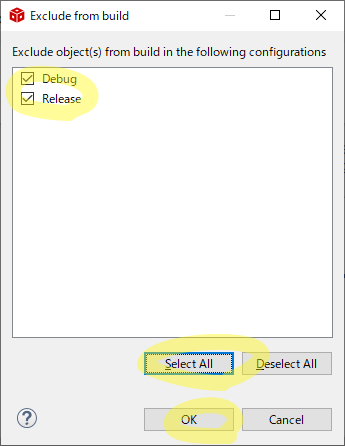 Select Allをクリックし、Debug,Releaseにチェックを入れ、OKを押します。