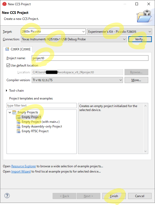 参考資料ではCCS5を使用していますが、私は2019年12月時点で最新のCCS9.2.0を使ってみました。