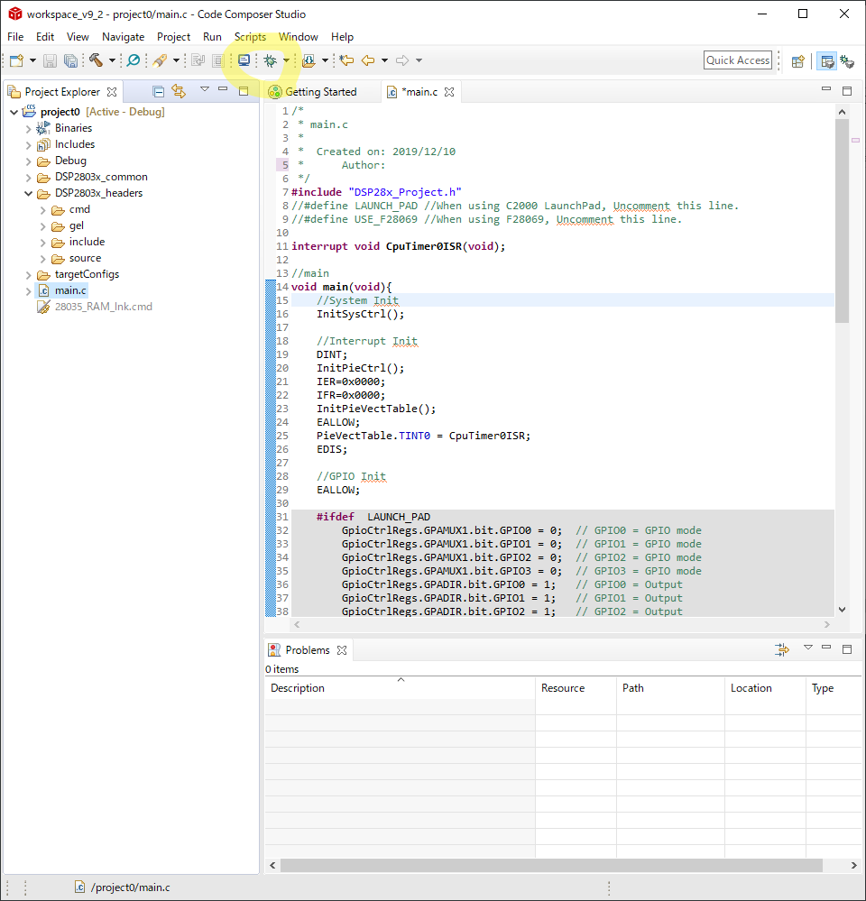 F2803xのxにはシリーズ名が入ります。今回は28035です。