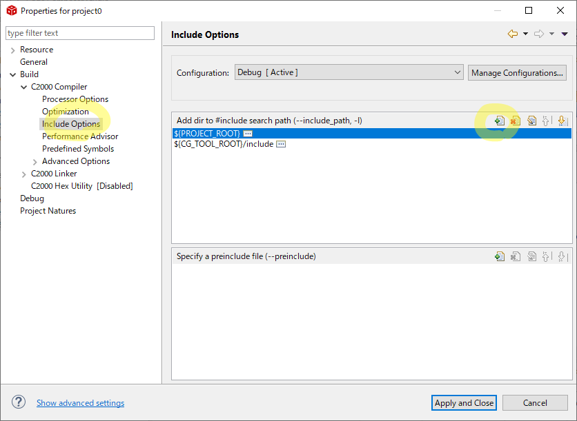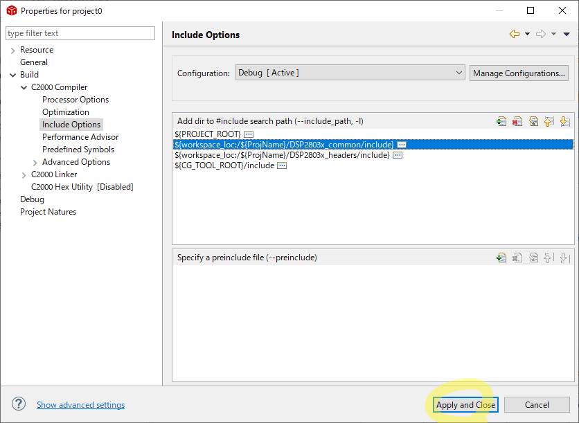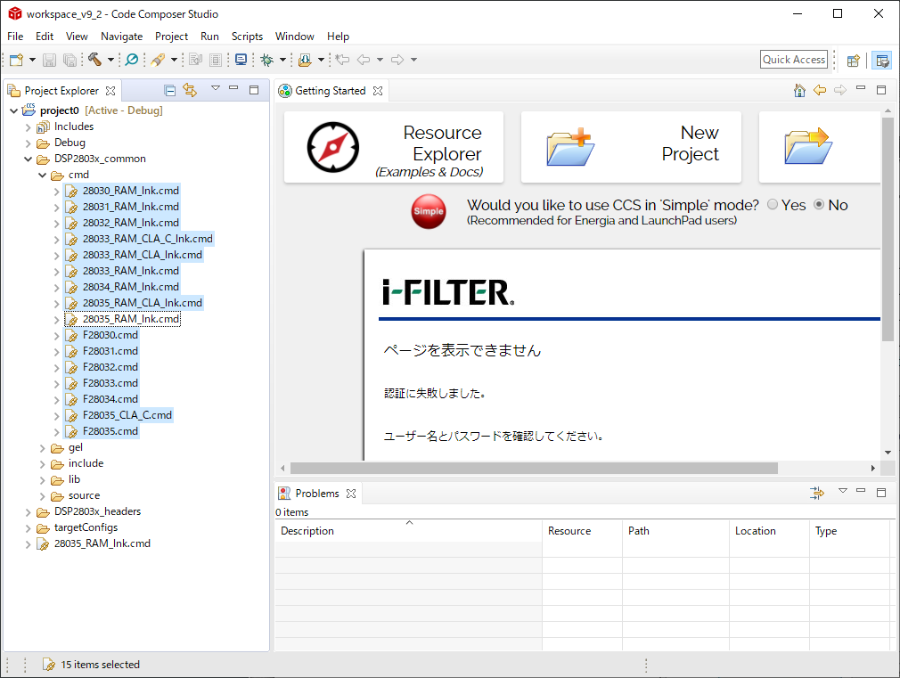 DSP2803x_common – includeとDSP2803x_headers – includeを選択し、OKをクリックします。(複数選択します)