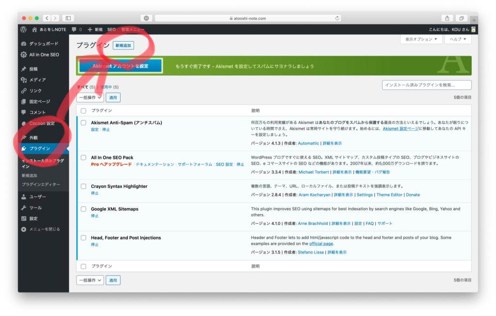 左のメニューで「プラグイン」→「新規追加」