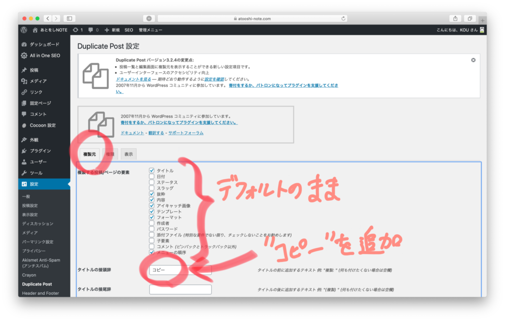 複製した記事がわかりやすいように、タイトルの接頭語に「コピー」を追加しました。