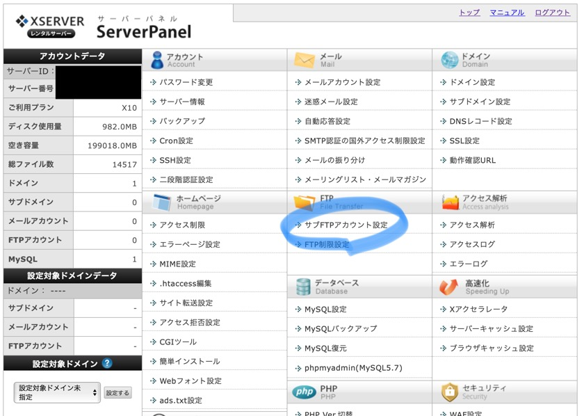 続いて、Xserverの管理画面から丸ごとダウンロードする方法を紹介します(^^)