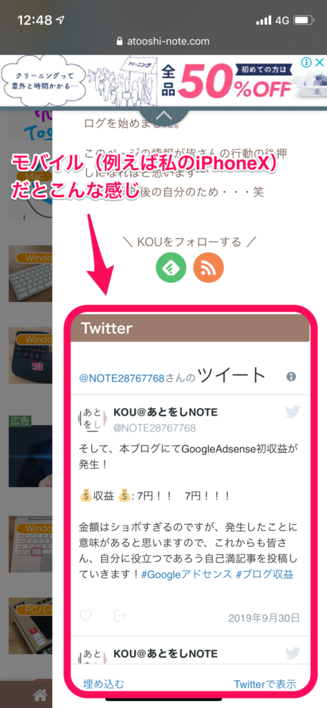 保存したら、自分のブログを見てみましょう。これで、サイドバーにTwitterのタイムラインが表示されます。