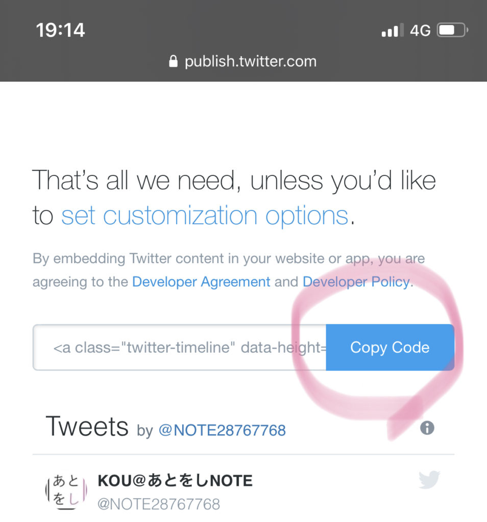私の例ですと、コピーしたものが「https://mobile.twitter.com/NOTE28767768」
