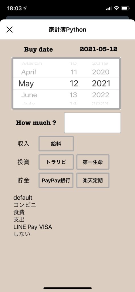 固定費の項目を増やしたい時は、ボタンを増やして、def~の関数を増やしていくだけです(ゴリ押し)