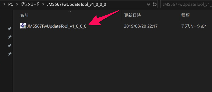 ダウンロードしたzipファイルを解凍すると以下のファイルがでてきますので、ダブルクリックで開きます。