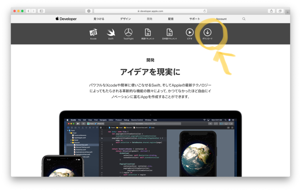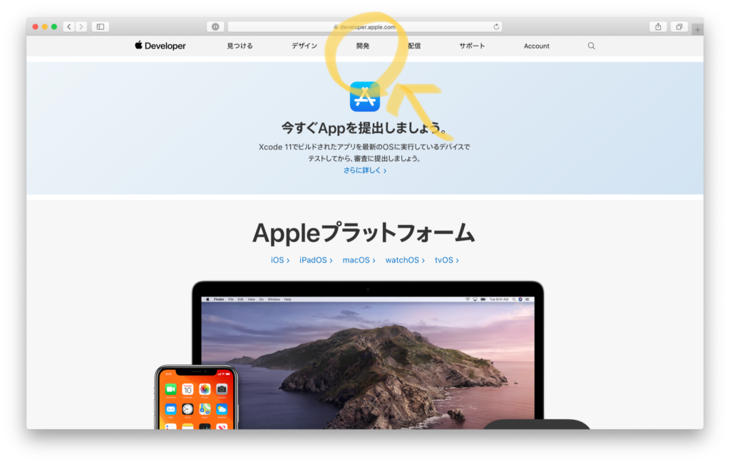 AppleのDeveloperサイト(以下)にアクセスします。