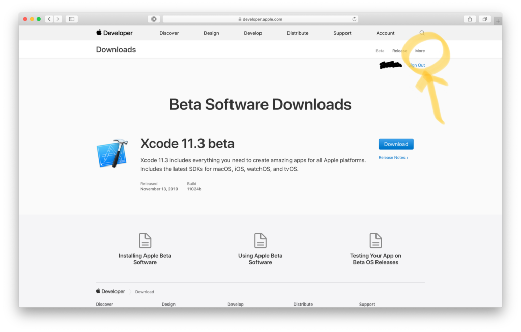 リリースが新しい順に並べ替え、最新を使います(betaでないもの) ダウンロードにはAppleIDが必要です。 インストールにはちょっと時間がかかるので、気長に待ちましょう。