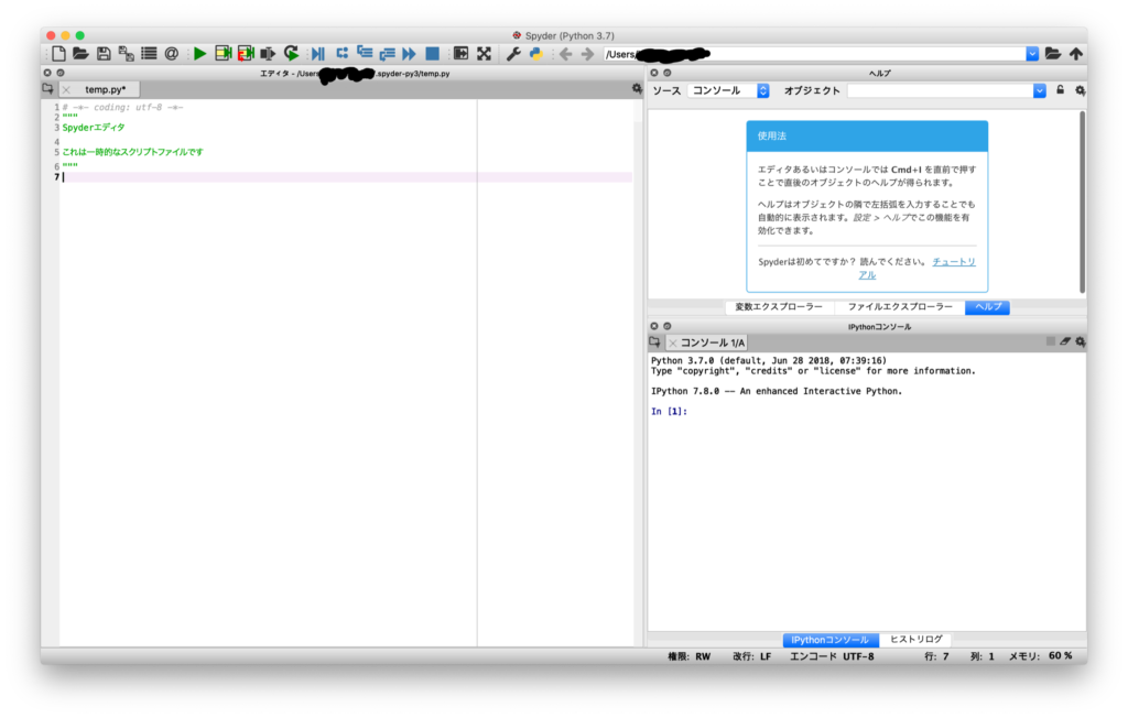 py374に入った状態で、spyderを起動してみます。