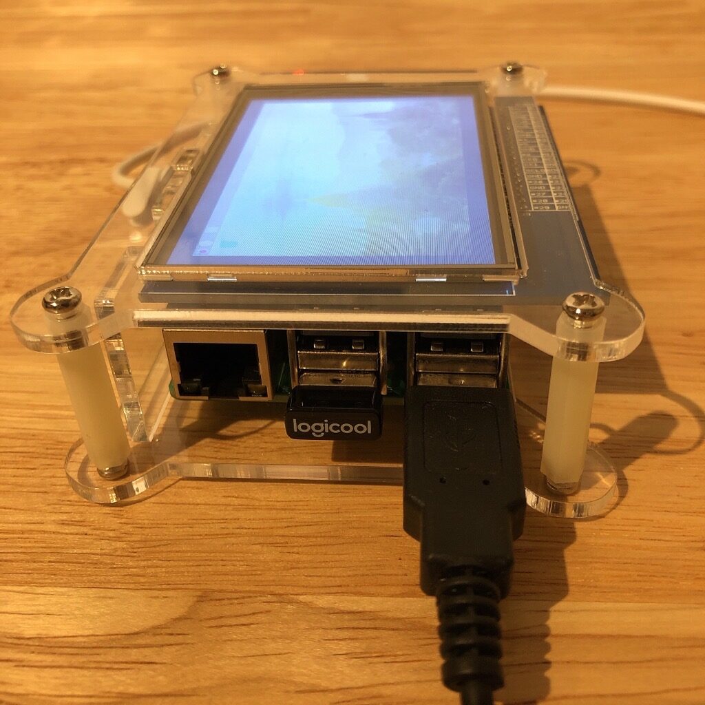 ラズパイが起動した状態で、空いているUSBポートに差し込んでいます