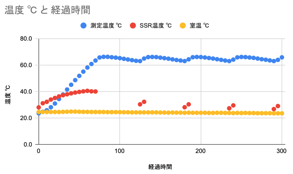 - 空白はSSRが目標温度に達したため停止し、温度が測定できないため