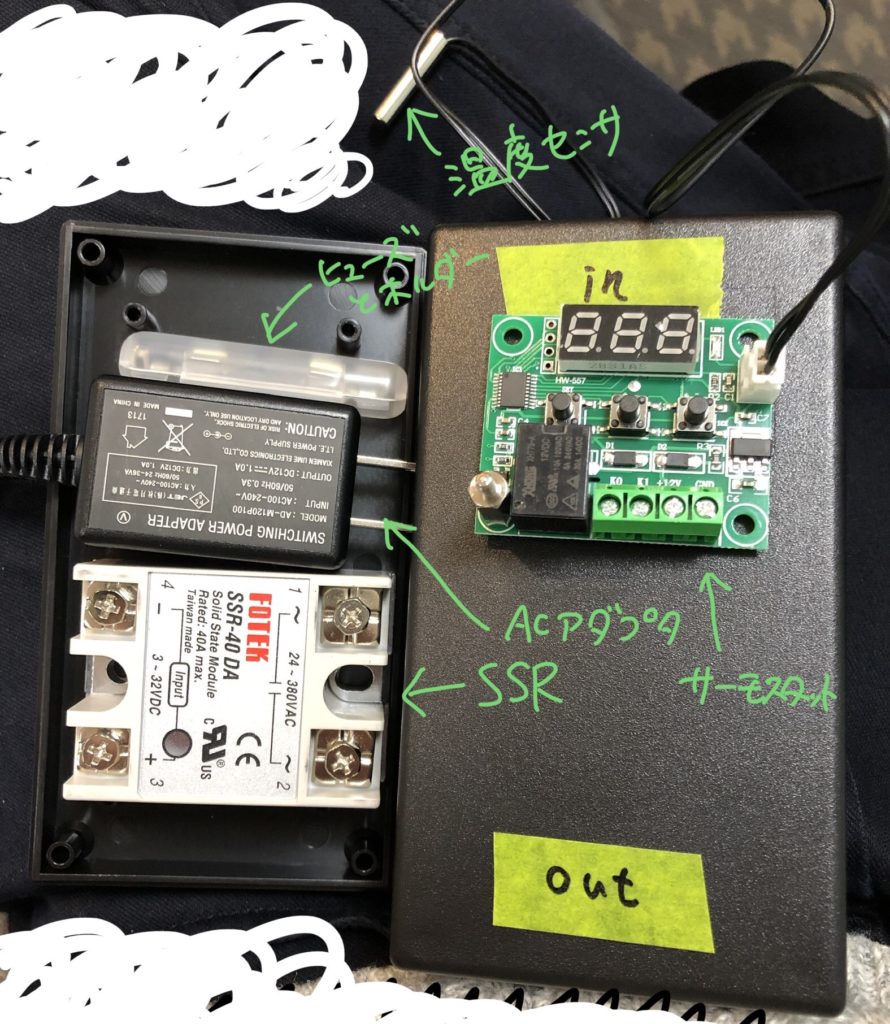 ヒューズからSSRの出力まではケースに組み込みました。