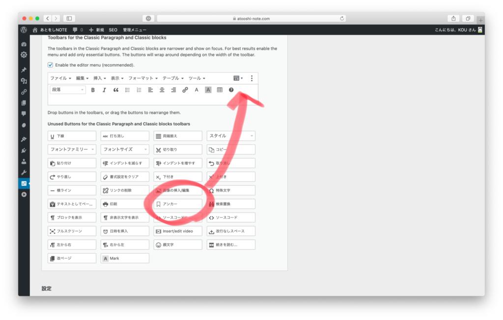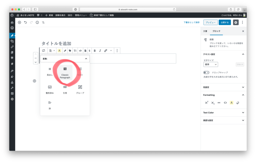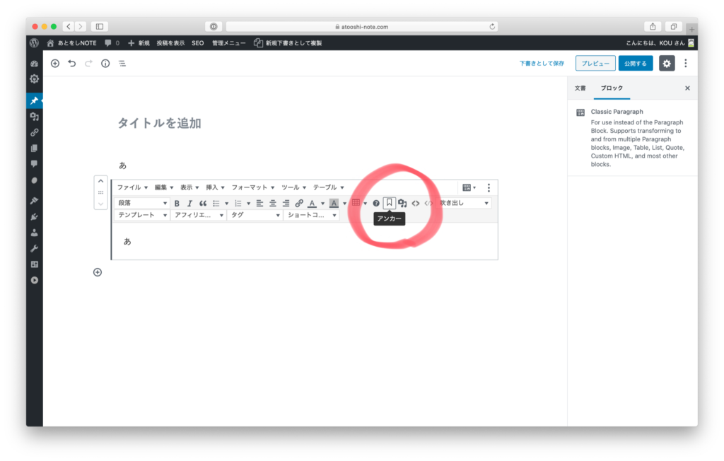 段落ではなくてClassic Paragraphを選択しないと先程のアンカーメニューが出てこないので注意して下さい(^^)