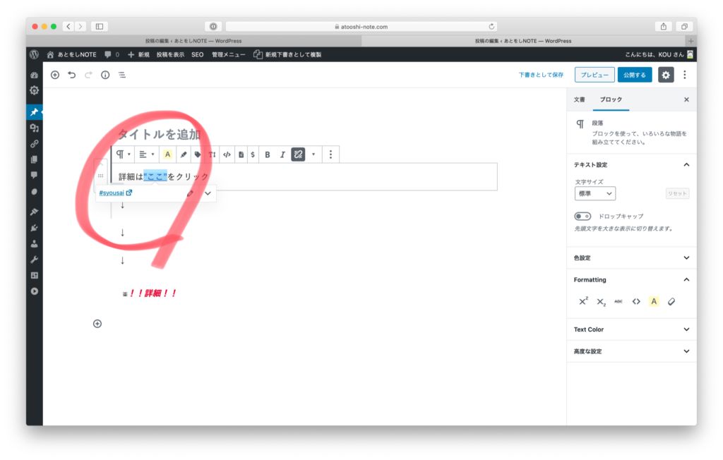 まず、ジャンプ先である「!!詳細!!」にアンカーを打ち込みます。