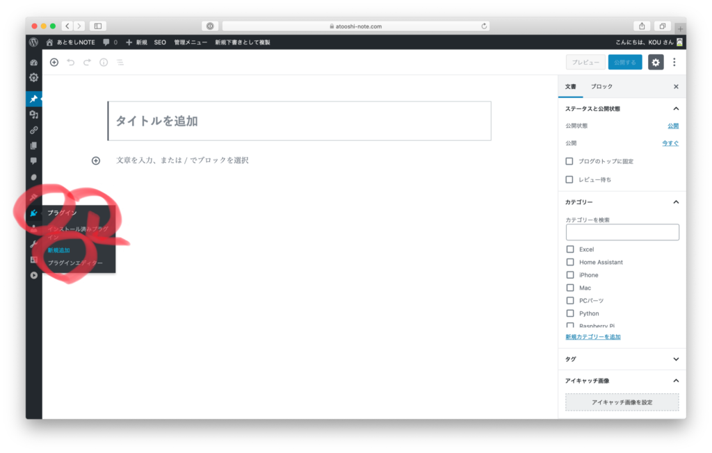 プラグイン → 新規追加 をクリック