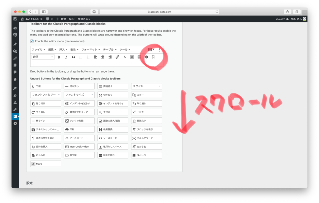「Block Editor(Gutenberg)」タブが選択し、下にスクロール(デフォルトで選択されています)